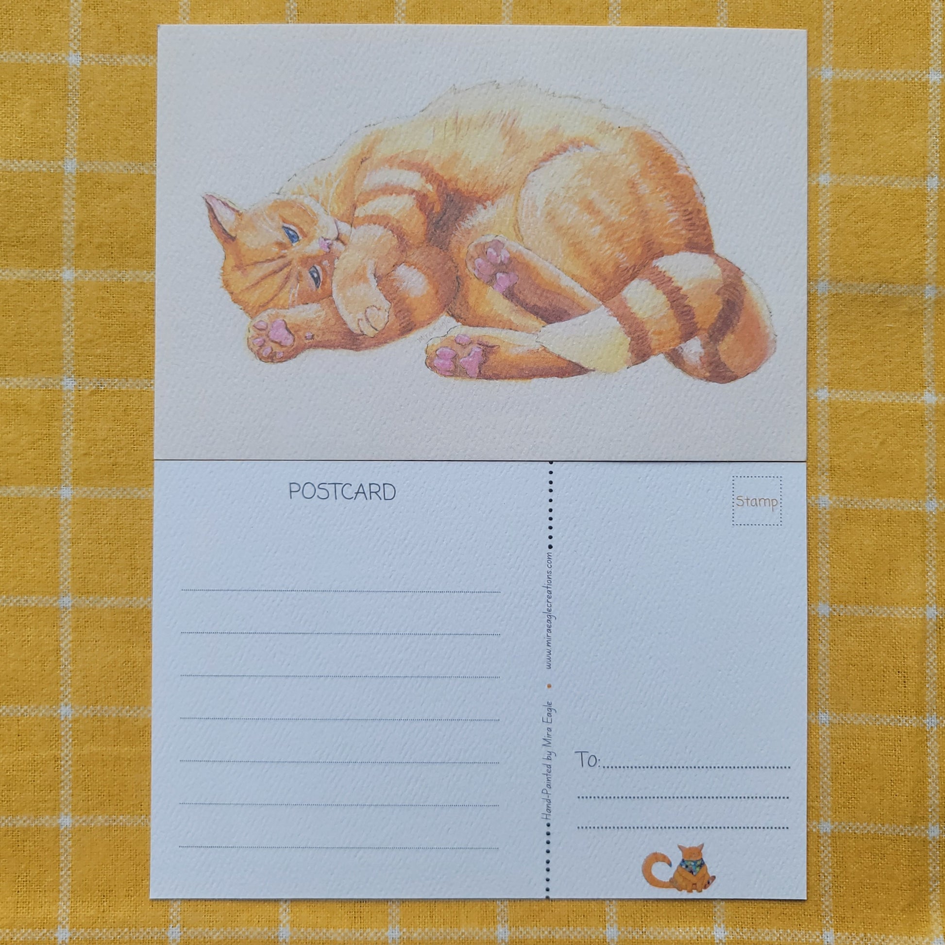 This illustrated postcard features Cal, the sweet and snuggly familiar from my upcoming novel. Hand-painted in watercolor and printed on 110 lb Felt Bright White cardstock, this 4" x 6" art print has a soft, textured surface that looks and feels like real watercolor paper. It's part of my 2025 Autumn & Winter Whimsy Collection.