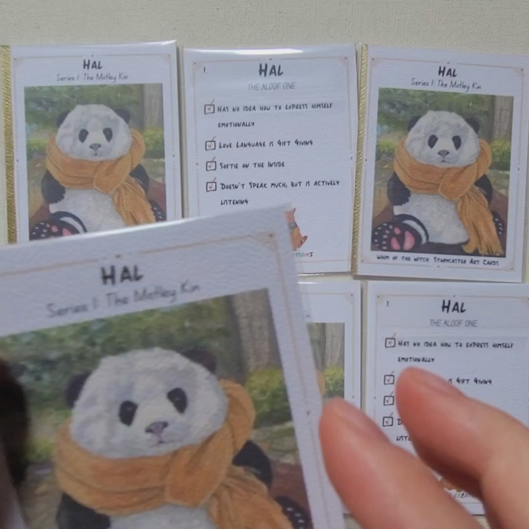 This 3x4 inch matte art card features Hal, a panda character from my upcoming fantasy novel, and is part of “Whim of the Witch: Storycaster Art Cards – Series 1: The Motley Kin.” Each card is printed on thick cardstock with a soft matte finish and includes a full-color illustration on the front, with a detailed character description and card number on the back.